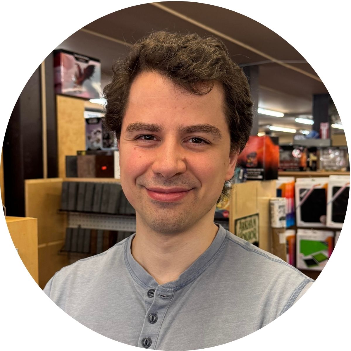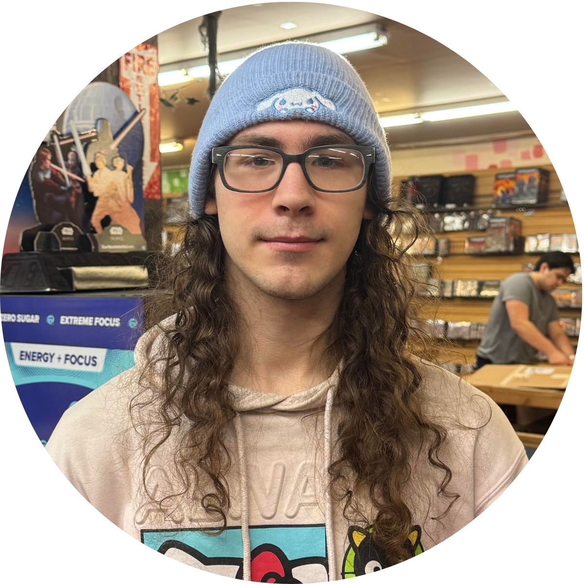 He enjoys anime like Cowboy Bebop and his favorite games to play are The Arkham Horror Card Game, Seasons, and anything Star Wars related.